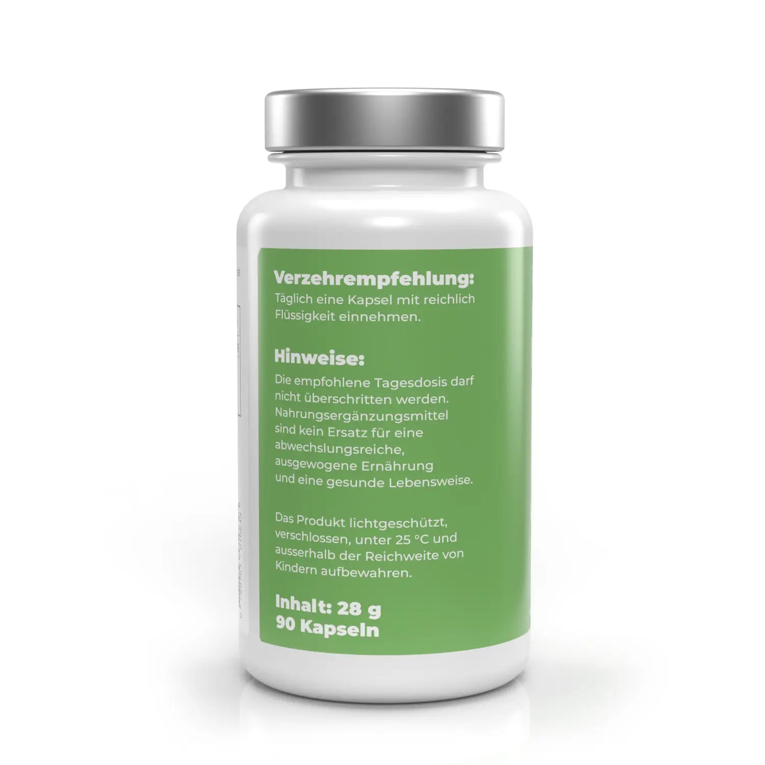 Die empfohlene Tagesdosis darf nicht überschritten werden. Nahrungsergänzungsmittel sind kein Ersatz für eine abwechslungsreiche, ausgewogene Ernährung und eine gesunde Lebensweise.