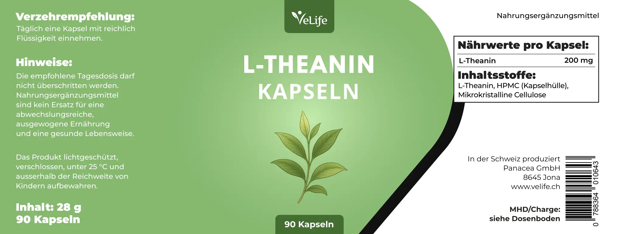 Unser L-Theanin stammt aus kontrollierten Quellen der Teepflanze und wird in der Schweiz mit höchster Sorgfalt verarbeitet. Jede Kapsel enthält 200 mg reines L-Theanin – frei von Farbstoffen, Aromen und unnötigen Zusatzstoffen.